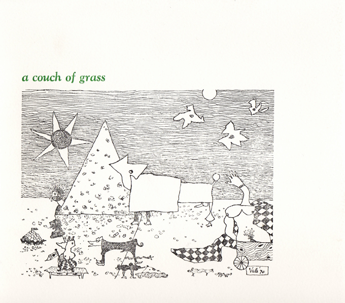 a couch of grass, 1993 Twelve selected poems by Florence Valeillustrated with six drypoint etchings by John Hartman |